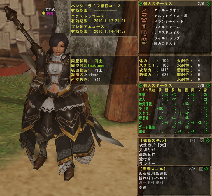 私は、メラン胴+レギス腰が好きすぎるため、いざこれを生かした装備を・・・ということで考えた結果・・・