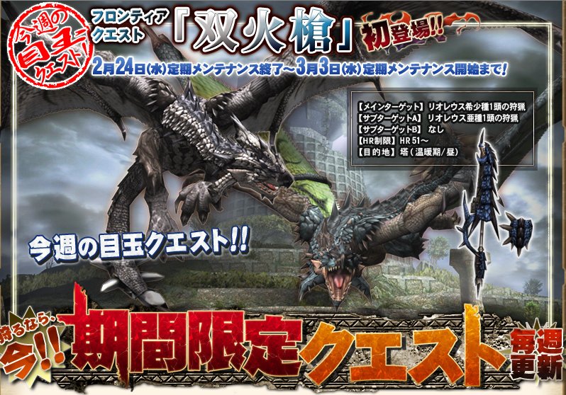 ということでMHFに双火槍クエストにいきたいと思いログインした私を待ち受けていたものは・・・!