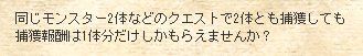 クエ内で同じモンスターを捕獲した場合の報酬についてです。